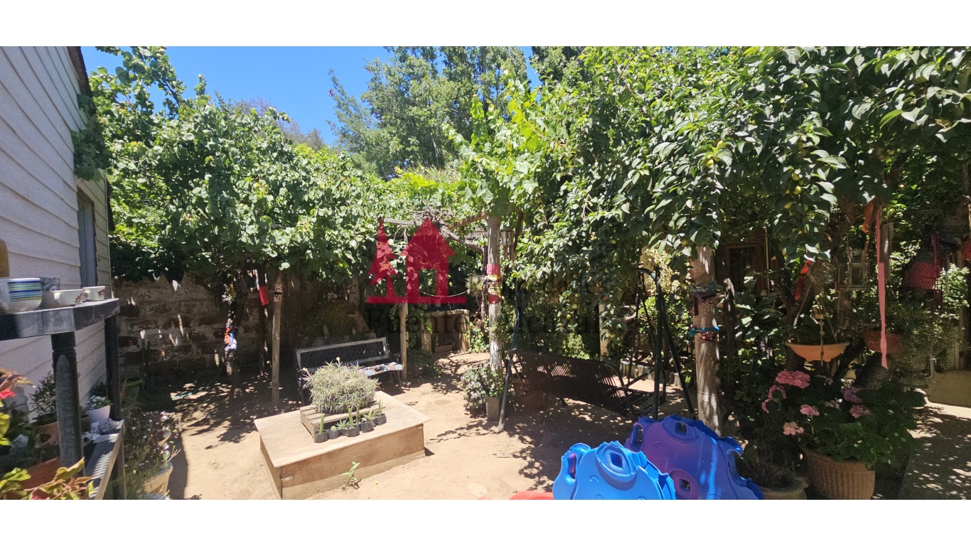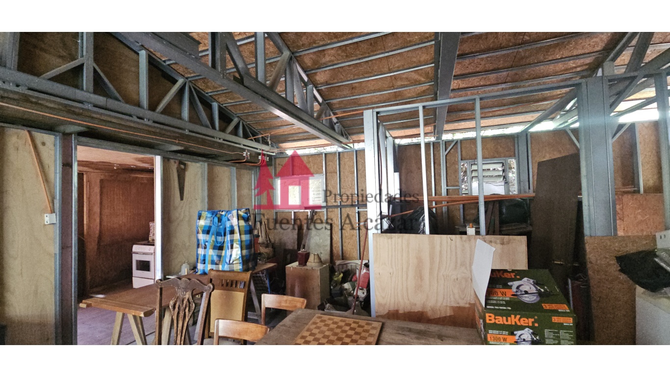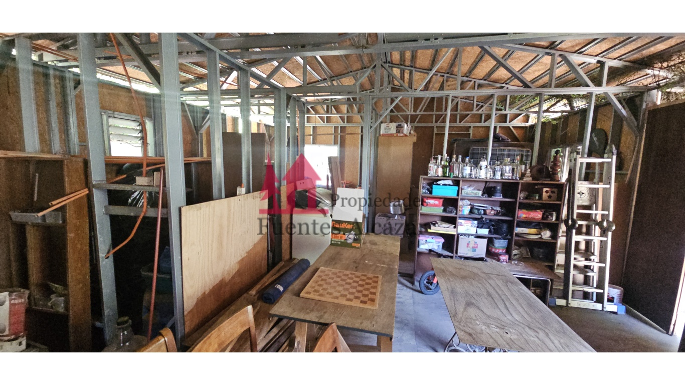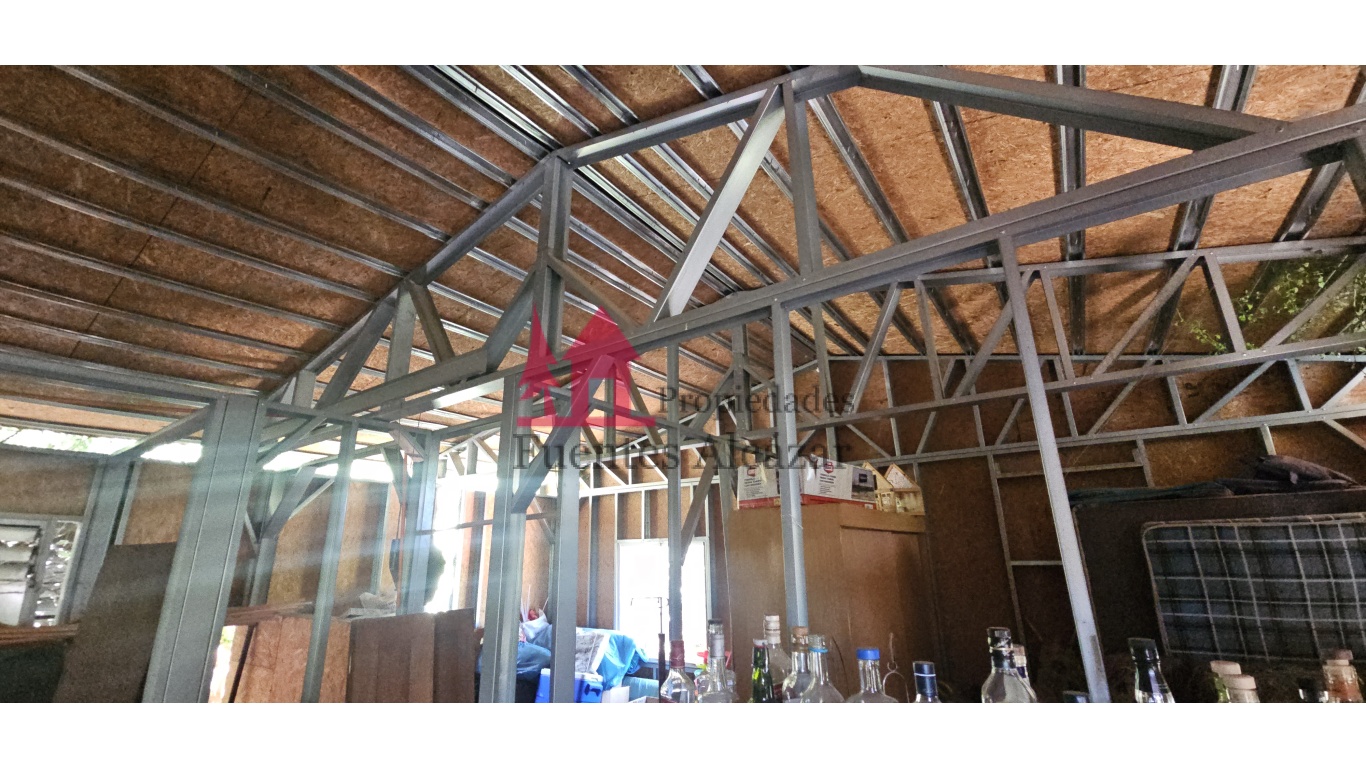 Estacionamiento techado con planchas de zinc, con capacidad para 2 vehículos.
